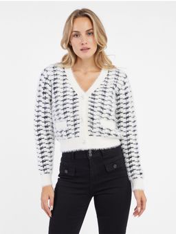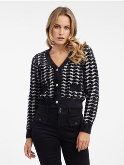 Schwarz-weiß gemusterte Damen-Strickjacke ORSAY